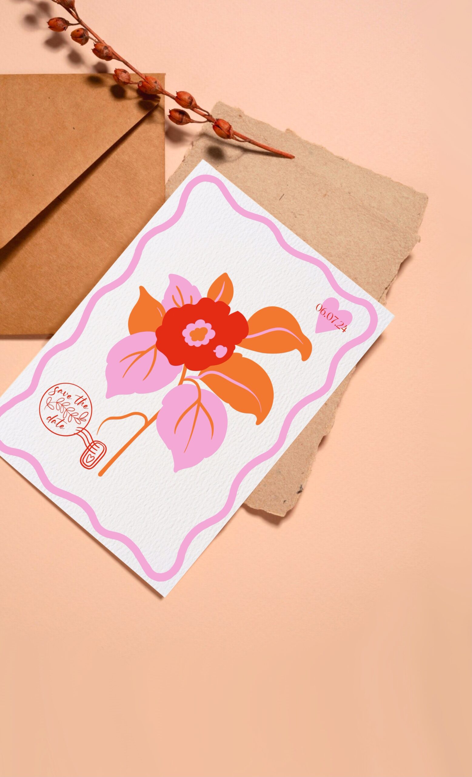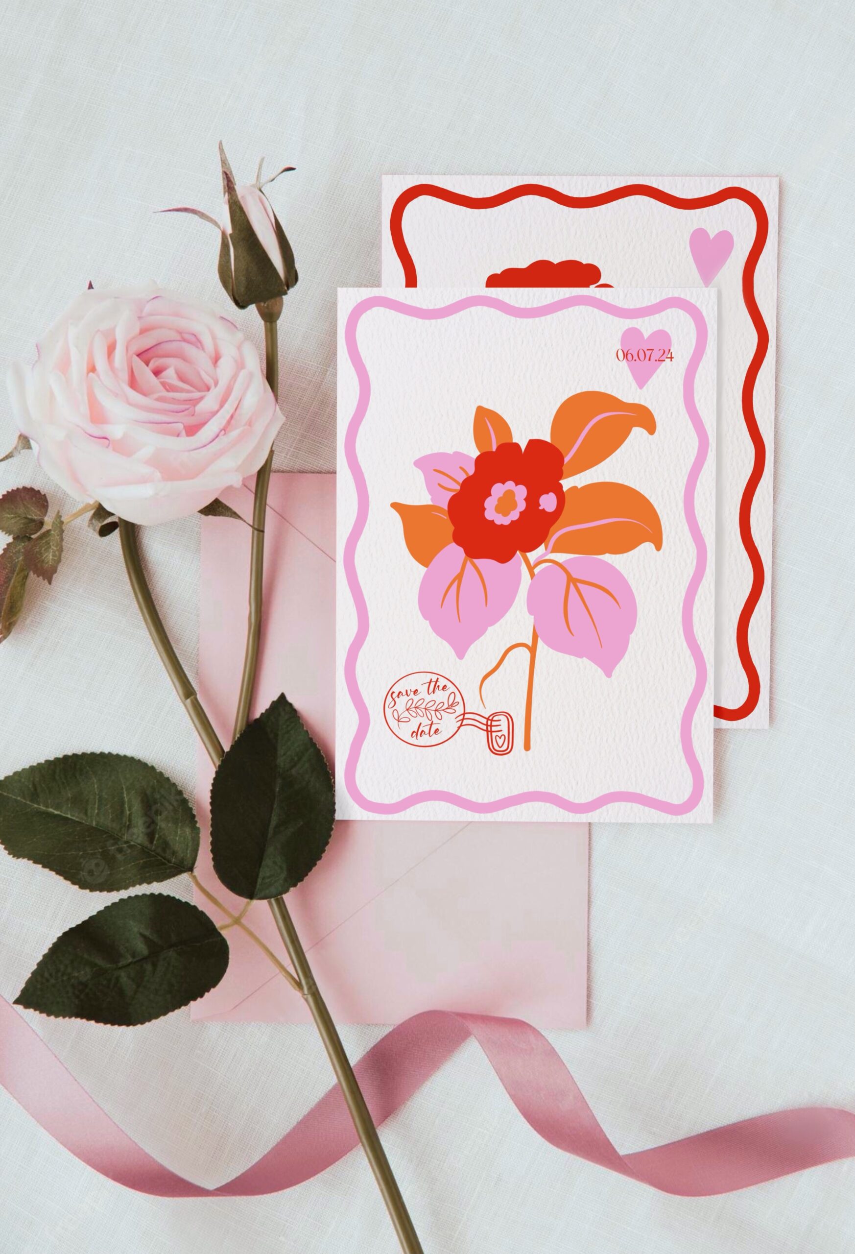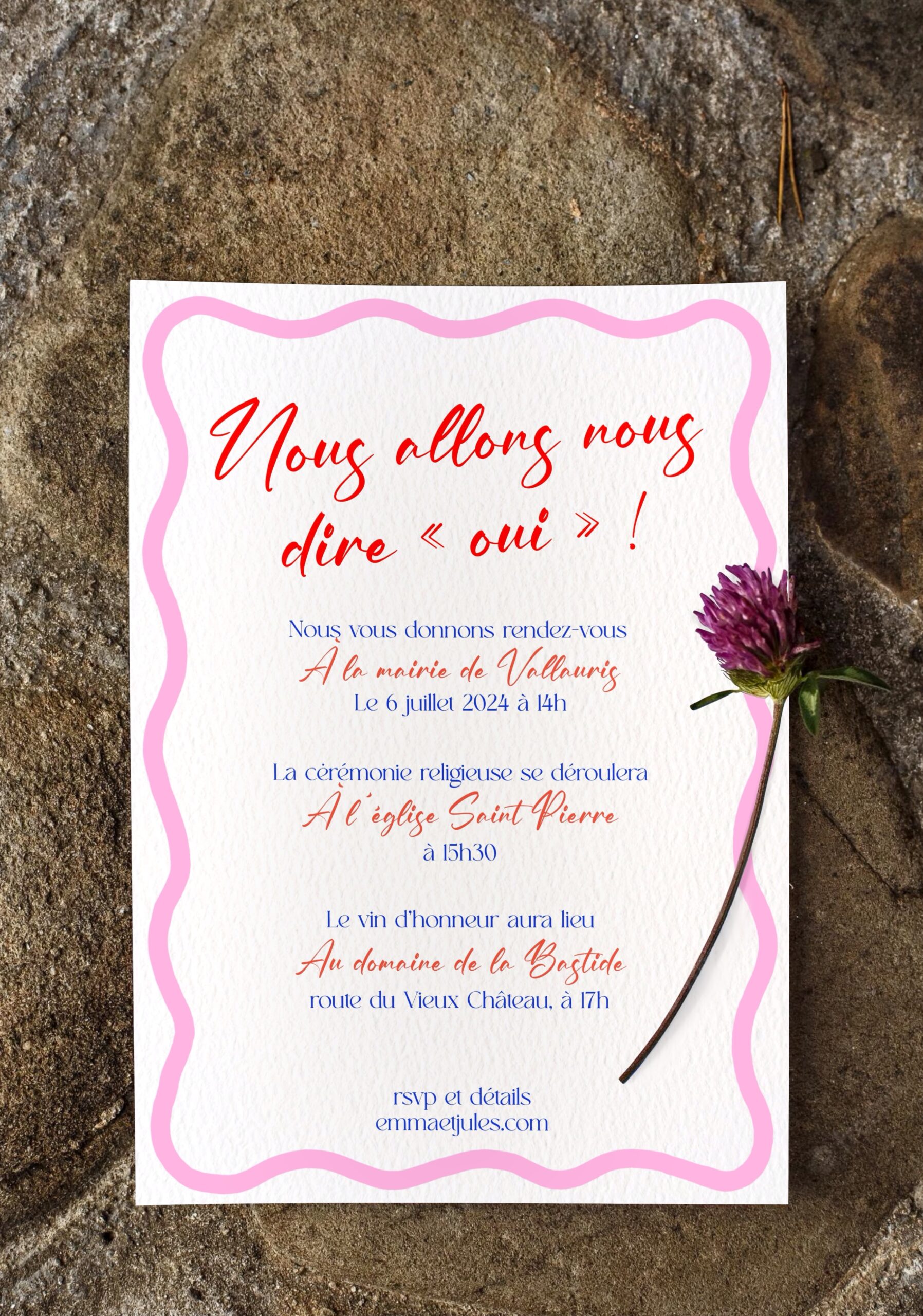 Un design résolument pop et joyeux, idéal pour les couples qui souhaitent une papeterie de mariage unique, lumineuse et pleine de personnalité.